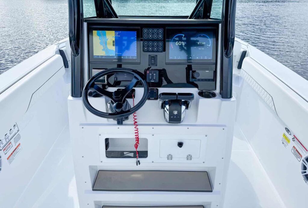 The 253CC comes with a head (which can be upgraded to a porcelain head) and a freshwater sink. Other standard features worth noting are a hardtop, walk-through door and Lumitec underwater lights. For electronics, the center console comes with Garmin 1243 Touch and Airmar B150M Chirp and a full stereo system. Buyers can add a second GPS screen and upgrade the stereo system.