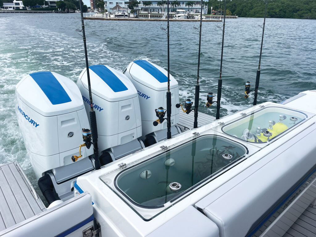 The CCF also gets an in-floor aft cockpit fishbox on each side with macerator discharge, with the port one fitted with a unique ice making system that produced over 20 pounds of ice per hour.
