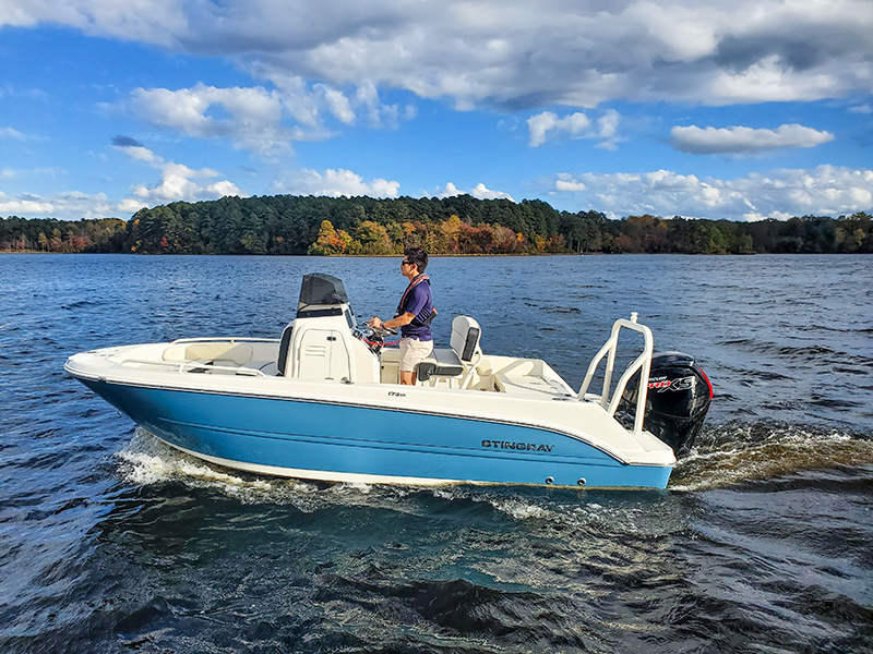 Checking in at 17’3” with a beam of 7’6”, designers packed a lot into the 173CC. The boat can seat up to seven people and no space went unused for stowage or lockers. Because the 173CC will likely see double duty as a fishing boat and a family tow boat, Stingray offers an optional ski-tow package and upgraded stereo system.