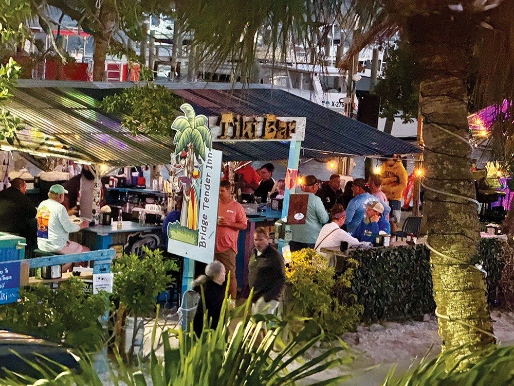 If you’re lucky enough to get a slip or raft off, visitors are greeted by a colorful restaurant and bar that has 18 televisions showing college and professional sports. In addition, the Bridge Tender Inn & Dockside Bar offers live music seven days a week. The bar even offers daytime bingo, trivia and poker events. Â