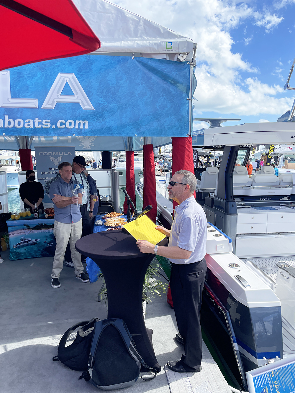 The 457 Center Console Sport joins the 387 Center Console Sport & Fish in the company’s lineup and like all the models Formula builds, it’s built rock solid. With a champagne toast, Formula’s Grant Porter launched the company’s latest model.