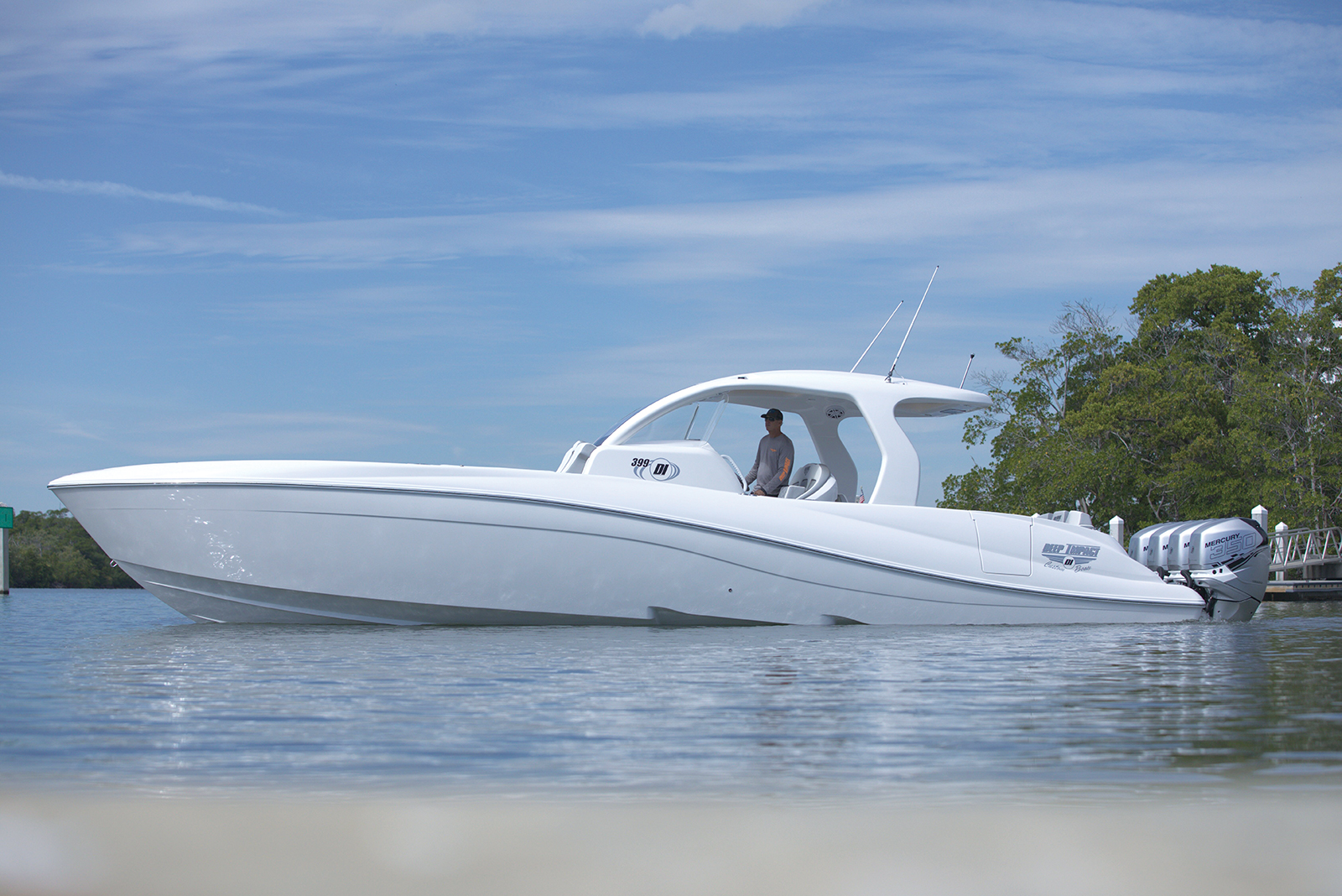 At first glance Deep Impact’s 399 Sport doesn’t look like a traditional center-console boat. Look deeper into the boat and the new 399 Sport will make both anglers and day boaters smile. The 399 offers a new take on the traditional T-top with the expansive roof featuring flush-mounted, tinted overhead panels to let in lots of natural light.