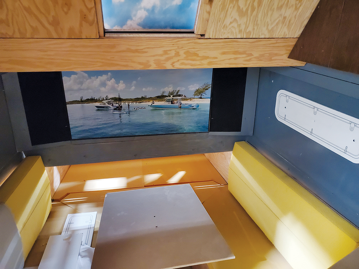 Formula plans to offer a galley that includes a refrigerator, sink and a microwave, opting for a cooktop in the cockpit. The U-lounge seating comes with a table and can be converted into a two-person berth.